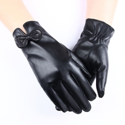 כפפות עור pu שחור לנשים עם טכנולוגיית מסך מגע מעוטר מעוצב עבור יומי ספורט חיצוני קטן גודל יד